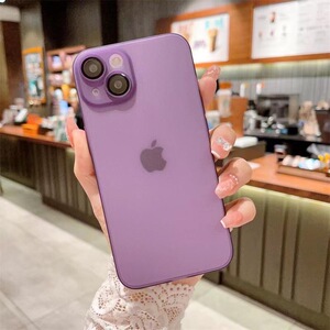 iPhone15用黒白レンズフィルム付きスマホケース、マット仕上げ、シンプル、半透明シリコンケース(iPhone17、iPhone14、iPhone13対応)