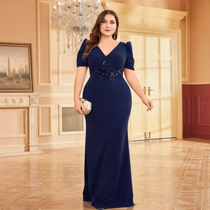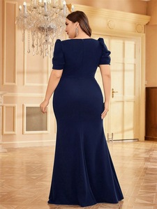 跨境欧美新款短袖连衣裙修身鱼尾伴娘宴会敬酒晚礼服伴娘礼服女