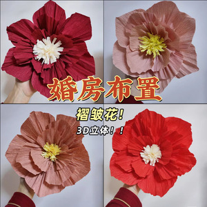結婚式の部屋のレイアウトプリーツフラワー立体クレープ紙フラワー結婚式の装飾新しい家の寝室の背景壁婚約ウェディング用品