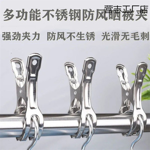 不锈钢强力大号开口夹子固定晒衣架家用晾衣夹防风