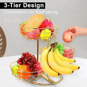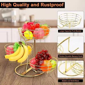 現物三階台所果物かご鉄芸客間デスクトップ果物野菜収納かごクロスボーダー取り外し可能フック付き果物かご