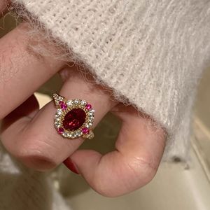 贅沢な気質の鳩の卵のバラの赤い宝石の指輪2025新型の贅沢な高級感のファッションの簡単な指輪の指輪