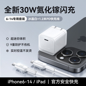 【iPhone6-14パッケージ】30W スノーマウンテンホワイト + 1.2m アイスクリスタルホワイト PD急速充電ケーブル