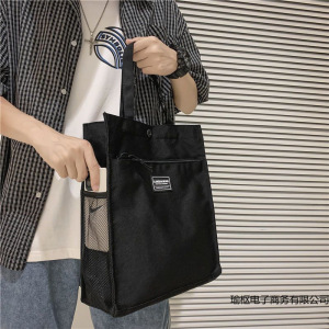 男性用ハンドバッグシンプルキャンバス男性用学生用塾バッグ通勤トートシングルショルダーバッグ大