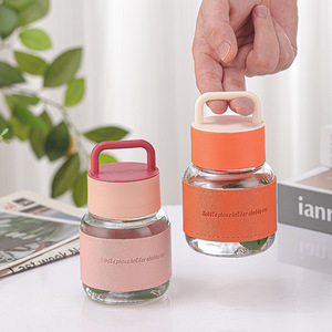 見栄えの良いポータブルインターネットセレブファットハンドルカップ、カップカバー付きオフィスコーヒーカップ、ハンドル付き断熱ガラスウォーターカップ