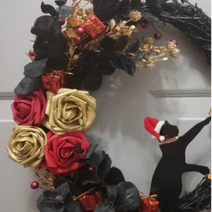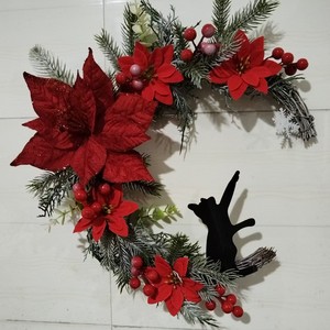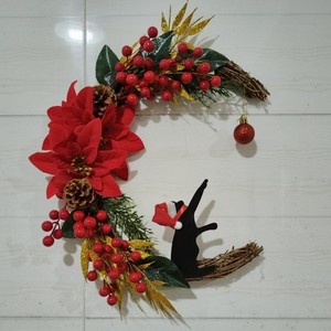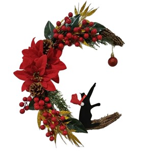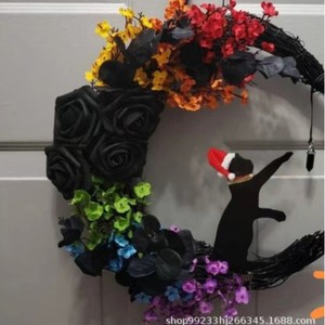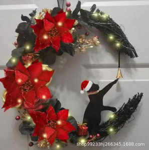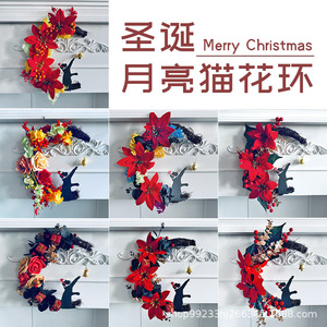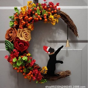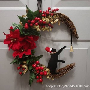 創意的な月の猫の花輪の扉は卸売りの家庭のクリスマスの植物の猫のショーウインドーの装飾のペンダントを掛けます。