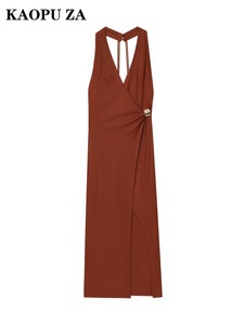 KAOPU ZA 2025春季新款女装修身显瘦挂脖连衣裙设计感小众百搭裙