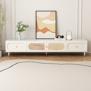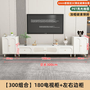 フレンチライト高級テレビキャビネットシンプルモダンリビングルームホーム吊り下げ床から天井までのクリームスタイルコーヒーテーブル組み合わせテレビキャビネット