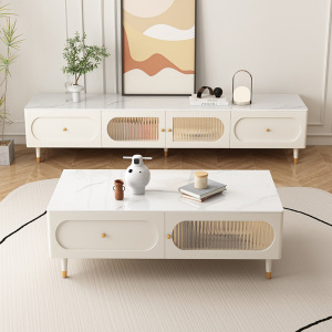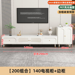 [テレビキャビネット 1.4 台 + コーヒーテーブル 1 台] + ストーンガラス