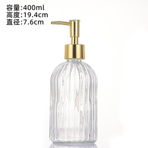 ゴールドポンプヘッド、400ml透明ボトル、ガラス