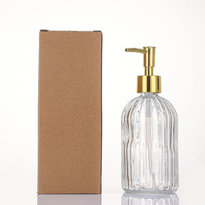 ゴールドポンプヘッド、シングルボトル + ポンプヘッド + クラフト紙箱、ガラス