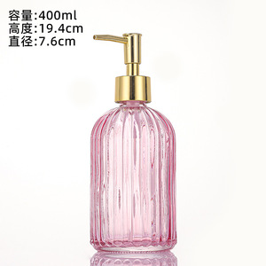 ゴールドポンプヘッド、400ml ピンクボトル、ガラス