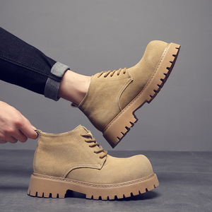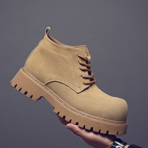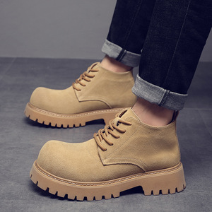 秋の新作ダービーシューズ、新しいハイトップ厚底ラージヘッドマーティンブーツ、レトロなワークウェア、ファッショナブルなラージイエローブーツ