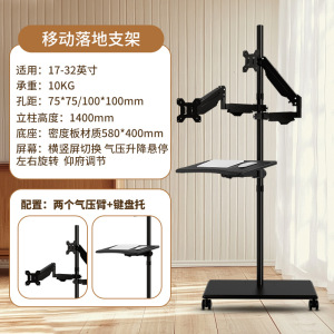 デュアルガス圧アーム + キーボードトレイ床置き型可動式 17-32inch