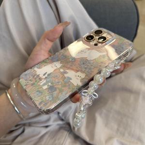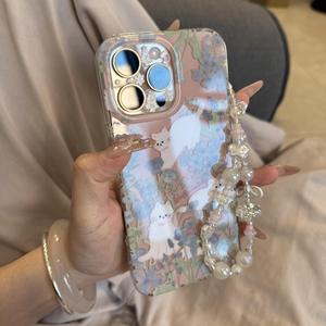 Ins風花叢猫青薔薇はリンゴ16promax携帯ケースiphone15/14/13女性に適している
