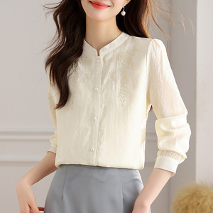 2025 春夏中国風刺繍長袖シャツハイエンドスタンドカラーシャツ春の新作女性のトップス