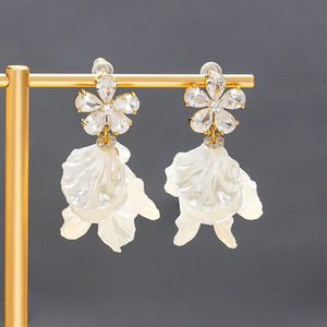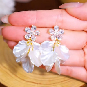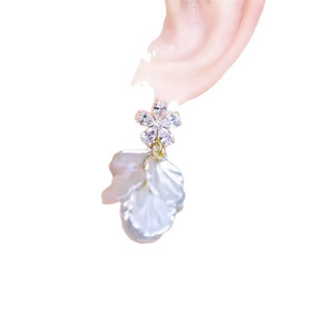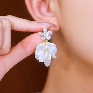 925银针个性几何微镶锆石裂纹花瓣耳环女气质时尚甜美感耳钉耳饰