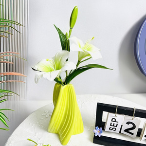 造花 テーブル 高級 デスクトップ 部屋飾り ホームリビング装飾 保湿感のある手触りのユリの花