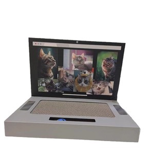 コンピュータの猫は板のネットの赤いアイデアをつかんで折りたたみます。