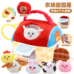ベビーミニファームフェルト牧歌的なハウス+ぬいぐるみ6体