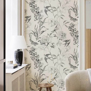 黑白燕子法式壁纸墙纸复古美式壁布墙布高级感卧室床头沙发背景墙