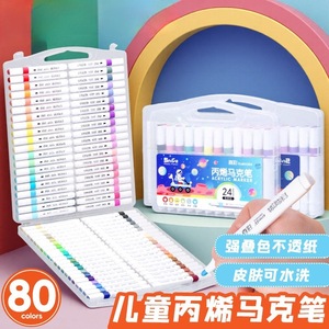 アクリルマーカー 80色 小学生・子供用 特殊水彩ペン 積み重ね可能 幼稚園専用絵筆