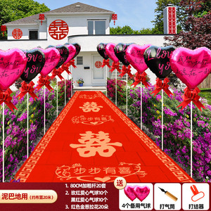 結婚式のウェルカムシーン、田舎の庭、道端、外観、道路、バルーンコラム、シーンレイアウト、結婚式の装飾、結婚式の部屋の中庭