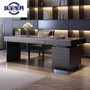 イタリアのミニマリストモダンなミニマリストスタディデスクライト高級ホームコンピュータデスクスモーク無垢材オフィスデスクボスチェア