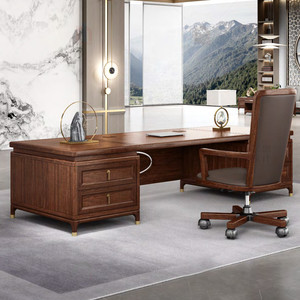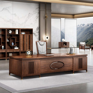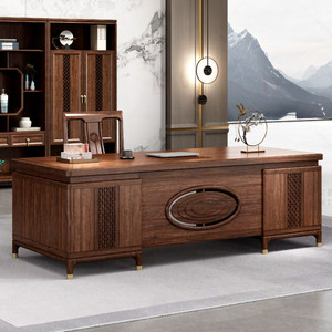 ハイエンドボスデスクウッドウッドカラーオフィスデスク新中国風無垢材フレーム社長デスクモダンな新中国風エグゼクティブデスク