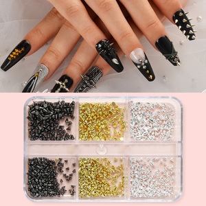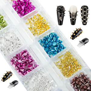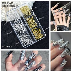 クロスボーダーダークパンクスタイルネイルアートジュエリーゴールド、シルバー、銅コーン平底リベットダークスイートスパイシーサイバースタイルネイルデコレーション