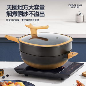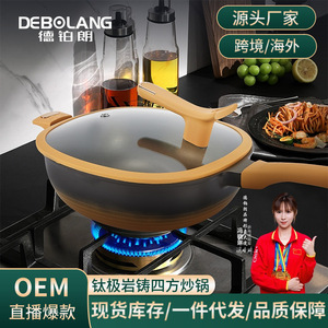 新款钛极岩铸炒锅钛金不沾锅平底炒菜锅燃气电磁炉适用旗舰四方锅