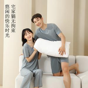 アイスシルクカップルパジャマセット女性の夏 2025 ルーズプラスサイズホームウェアメンズパジャマ在庫卸売