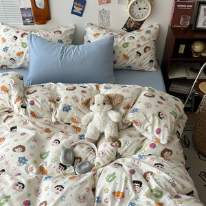 新型a類アニメ水洗綿4点セットの柔らかい快適なシーツが学生寮のベッドカバーの3点セットになっている