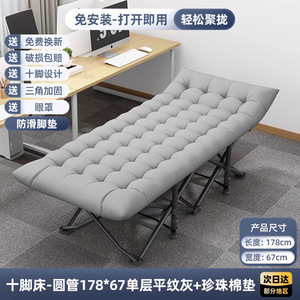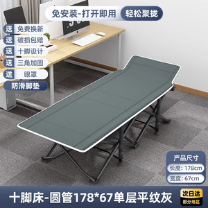折りたたみキャンプベッド [単層/グレー生地-丸チューブ] 178*67+快適なパールコットンパッド