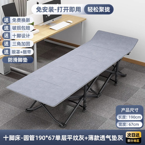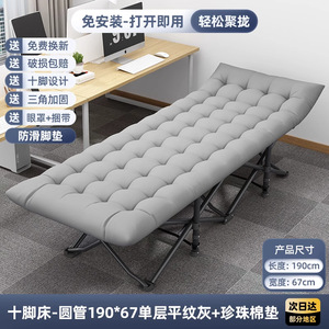 折りたたみキャンプベッド [単層/グレー生地-丸チューブ] 190*67+快適なパールコットンパッド