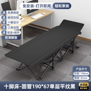 折りたたみキャンプベッド [単層/黒布-丸チューブ] 190*67+快適なパールコットンパッド