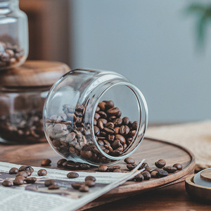 高ホウケイ酸ガラス保存瓶アカシア材ラウンドドライフルーツスナックシリアル密封瓶小さな透明保存瓶