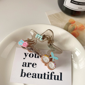 女性の後頭部に半分結ばれた髪を結ぶためのハイエンドの五芒星のかわいい小さなクリップ、髪飾り、ハイポニーテールのシャーククリップ