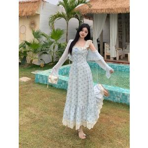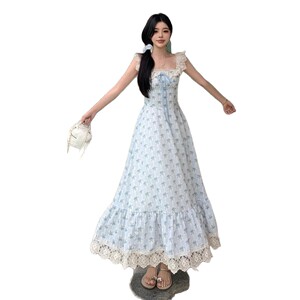 プラスサイズの優しいスタイルのサスペンダードレス女性のための 2025 新しい夏の花柄スカートファット mm スリムレーススプライシングロングスカート