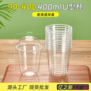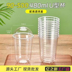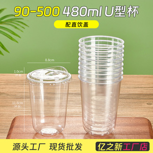 90 口径 U 字型ミルクティーカップ使い捨てマルチ仕様プラスチックカップ高透明 PET ヨーグルトコールドドリンクアイスアメリカンコーヒーカップ