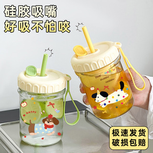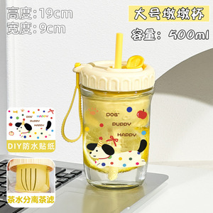 シンプルなインスタイルの茶水分離カップ、蓋付き高温耐性ガラスカップ、大容量ストロー、見栄えの良いポータブルカップ