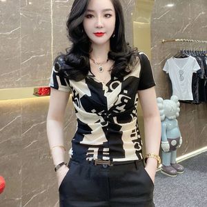2025 新しいレタープリント襟半袖トップ女性のための 2022 夏の新しいプリーツデザインスリムフィットと弾性
