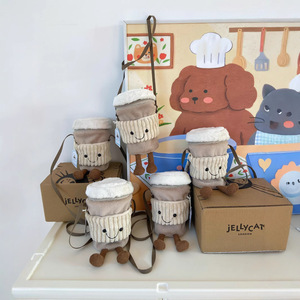 【現品】Jellycatコーヒーバッグ斜めがけショルダーバッグ人形随行カップバッグコーヒーカップバッグぬいぐるみ