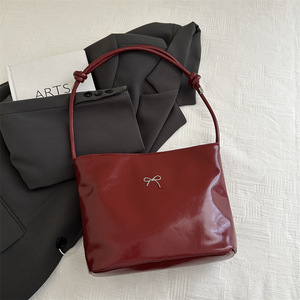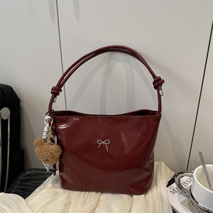 赤カバンレディース結婚カバン2025新作高級感大容量片肩トートバッグ高級感蝶結びレディース