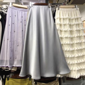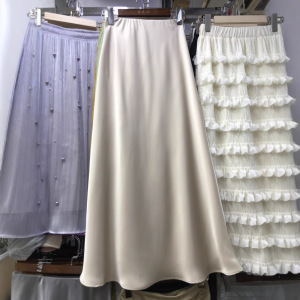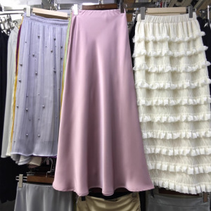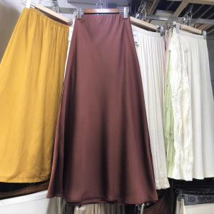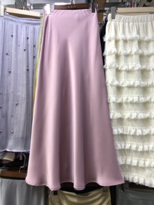 2025 早春の新フレンチシャンパンカラーアセテートサテンスカート女性のミッドレングスヒップカバーフィッシュテールスカート