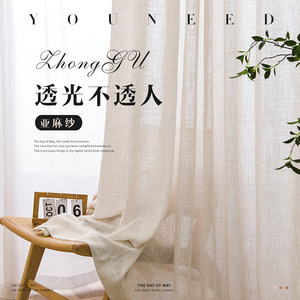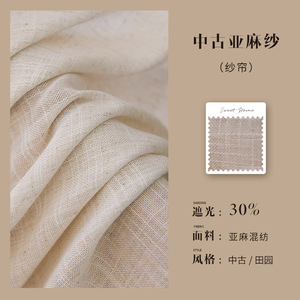 中世風リネン糸レトロクリームわびさび風綿麻カーテン透光不透明ガーゼカーテン高級窓スクリーン