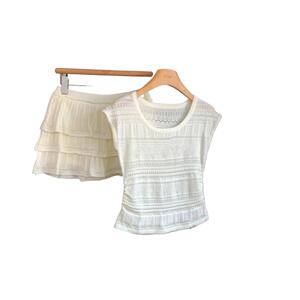 2025年夏の新型優しい風鉤花セットの薄い透かし彫りニット2点セット