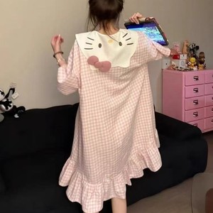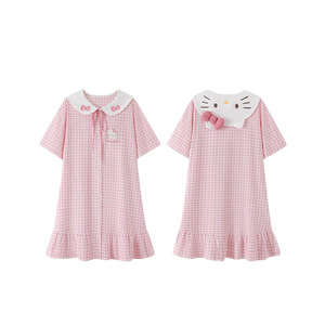 良質ソース工場ナイトガウン夏ネイビーカラーピンクと白シリーズキティ新しいテンセル綿ホーム服