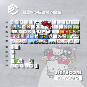 ハローキティキーキャップ74キー (箱入り) 元工場側刻透光PBT熱昇華高颜値キーキャップ適磁
