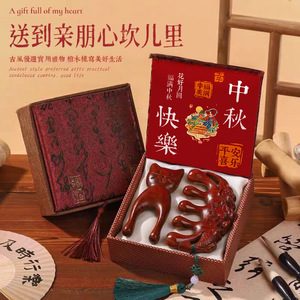 檀木按摩梳方盒中国风新年年会伴手礼头部经络按摩梳礼盒38节礼物